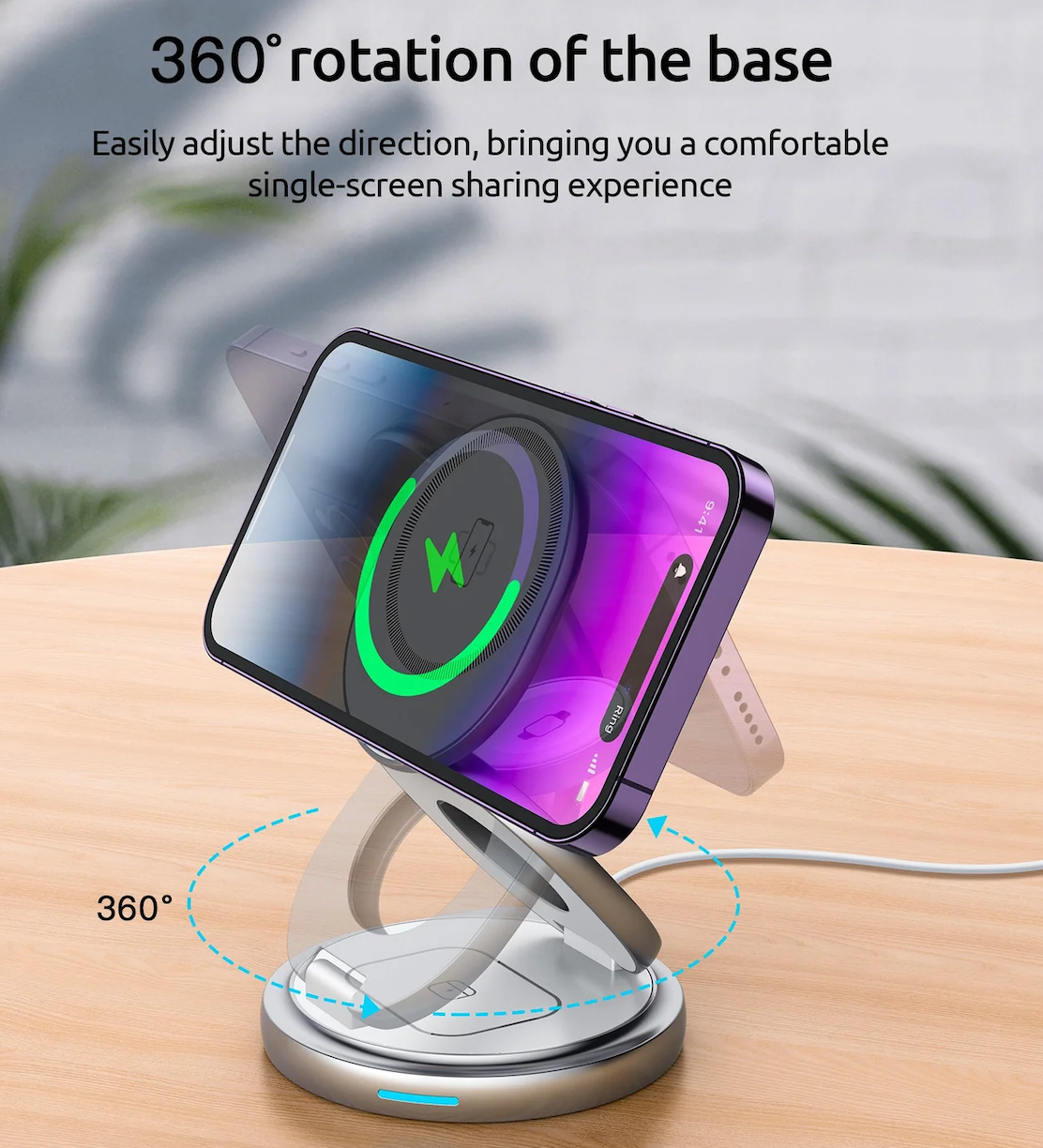 Chargeur Sans Fil 3 en 1 avec Support Magnétique Réglable